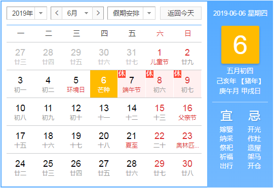根據(jù)《國務院辦公廳關于2019年節(jié)假日安排的通知》,結(jié)合公司實際情況,2019年端午節(jié)假期安排如下: