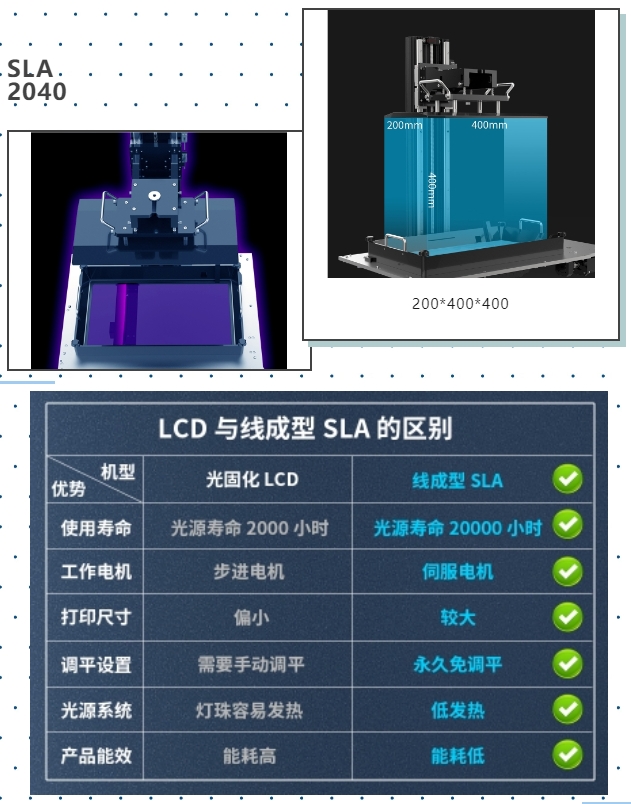極光創新SLA 2040采用全新線性激光掃描技術,長達20000+小時的激光光源使用壽命,是傳統LCD光源的十倍!使用壽命更長久!