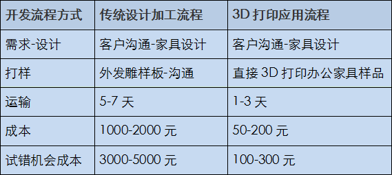 從傳統(tǒng)設(shè)計加工模式到3D打印創(chuàng)新定制,3D打印技術(shù)的大潛力,在辦公家具定制化中發(fā)揮著非常大的優(yōu)勢。設(shè)計師設(shè)計好一張桌子的腳凳造型,然后用3D打印機(jī)直接打印出來進(jìn)行結(jié)構(gòu)驗(yàn)證,驗(yàn)證沒有任何問題就會進(jìn)行下一步鑄造。這在很大程度上節(jié)省了開發(fā)時間,為企業(yè)贏得搶占市場的先機(jī),獲得客戶的信任。