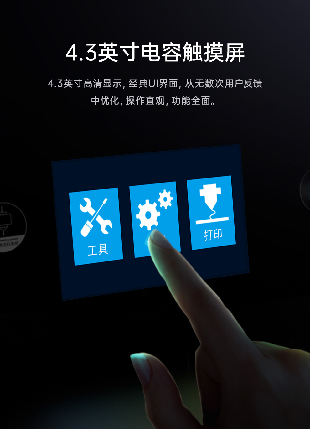 雙齒輪減速扭力更強,高精度傳感器多點全自動檢測,打印自動輔助補償,賦予3D打印機更強勁動力,運行流暢不卡頓