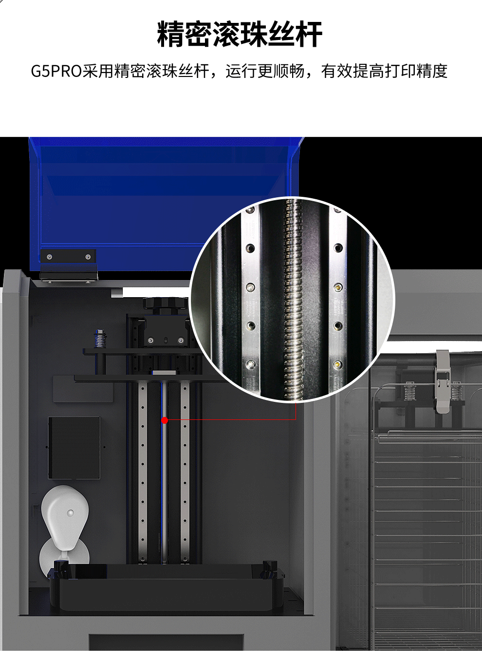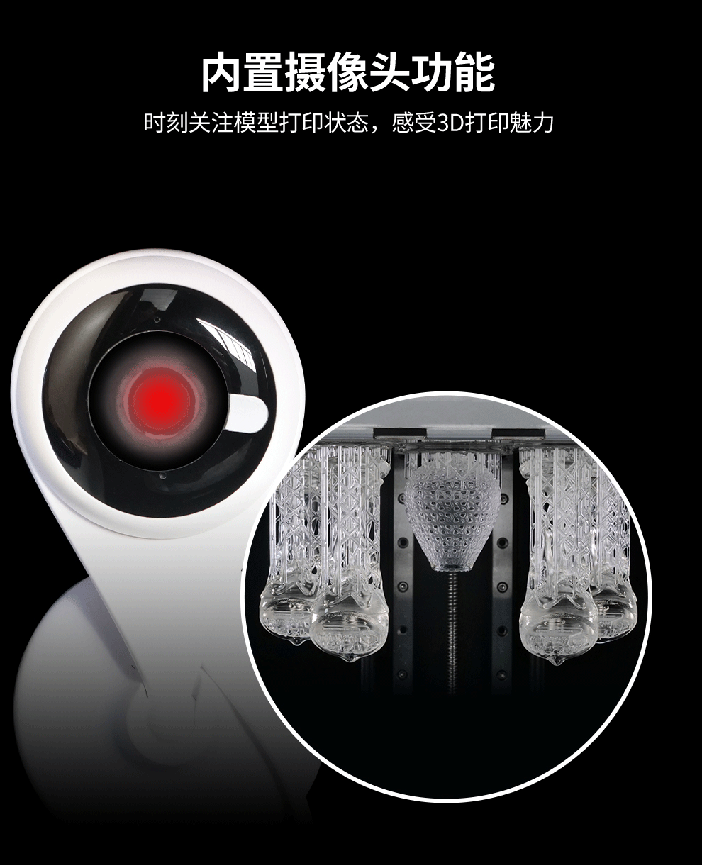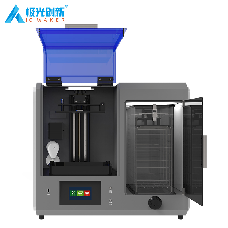 JG-L5 Pro 采用10.1寸6K透光固化屏,理論精度可高達0.045mm;增加打印、清洗、固化 三合一功能,內(nèi)置攝像監(jiān)控;對斷料檢測傳感器模塊做了升級,以及缺料會自動提示加料。