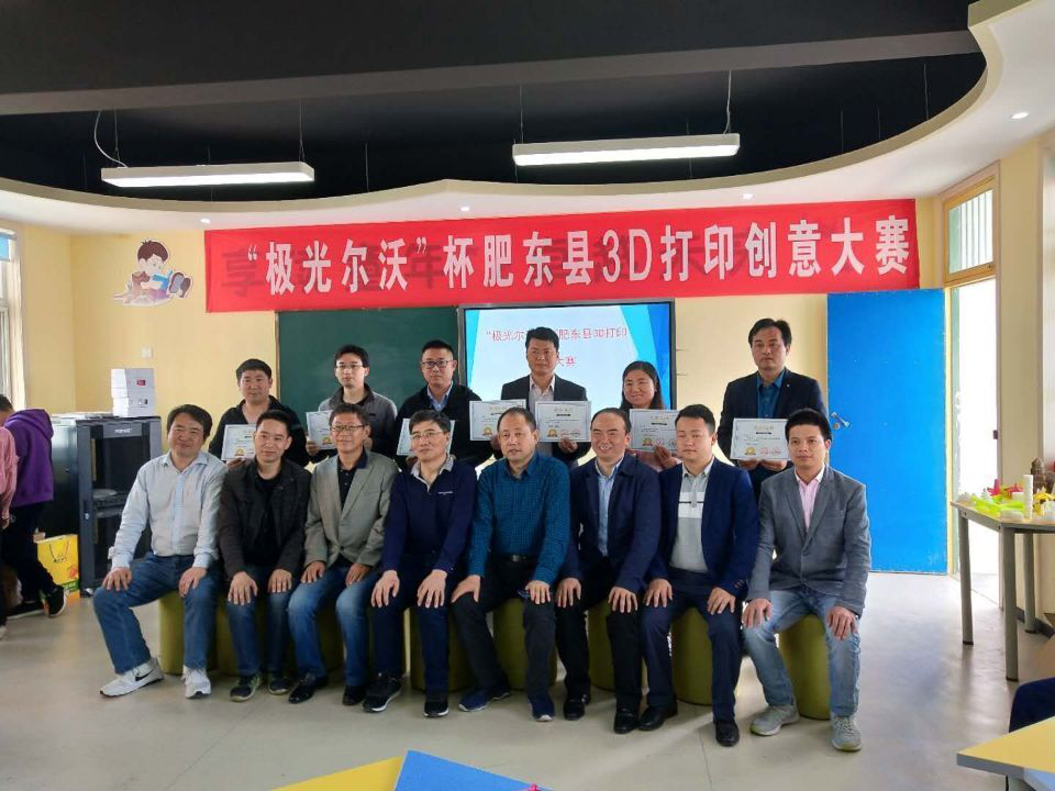 極光爾沃教育負責人和肥東縣領導、獲獎老師及其學生合影留戀