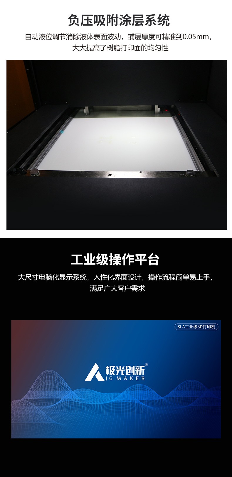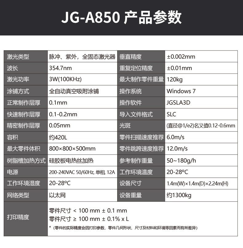 JG-A850 是極光創新自主研發生產的大尺寸工業級3D打印機,擁有800*800*500mm的成型尺寸,可以快速成批量的制做精密零件和組裝件。